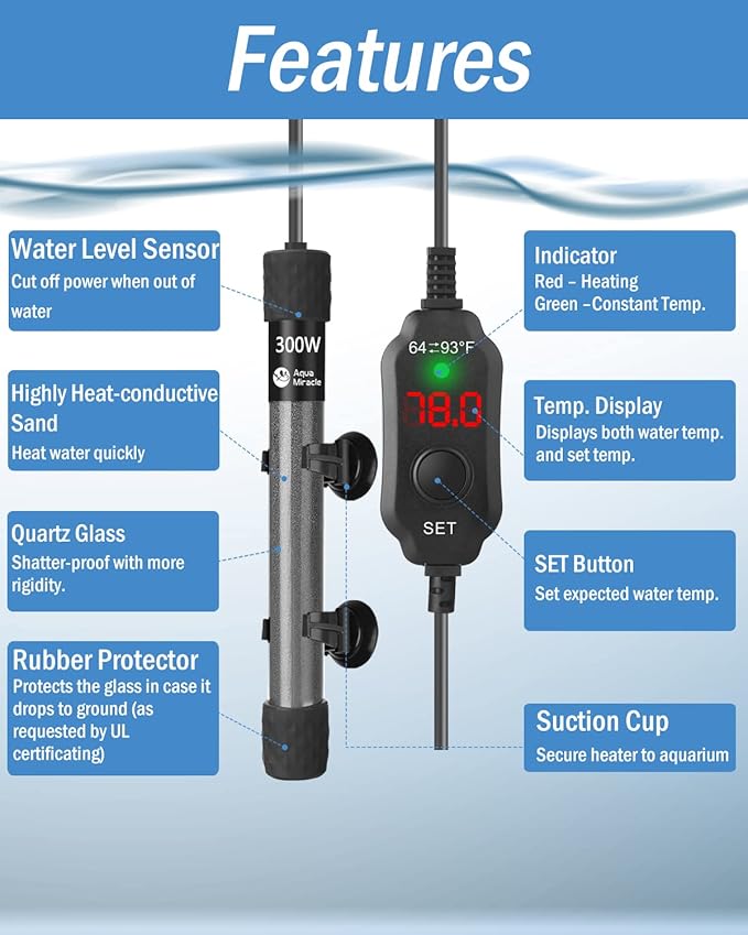 - MULTIPLE USES – This fish tank heater can be used for both fresh and marine water. It can be not only used as an aquarium heater, but can also work a turtle heater, pet fountain heater, and plant seedling heater.