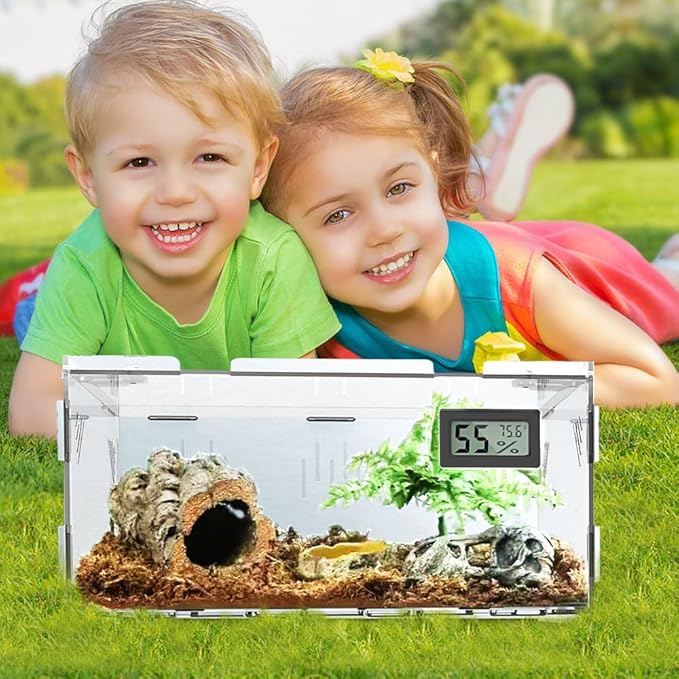 Reptile Terrariums, with Temperature Hygrometer, 15.7"x9.9"x7.1"Acrylic Reptile Breeding Box Terrarium Cage Tank for Small Reptile Insect Home Office