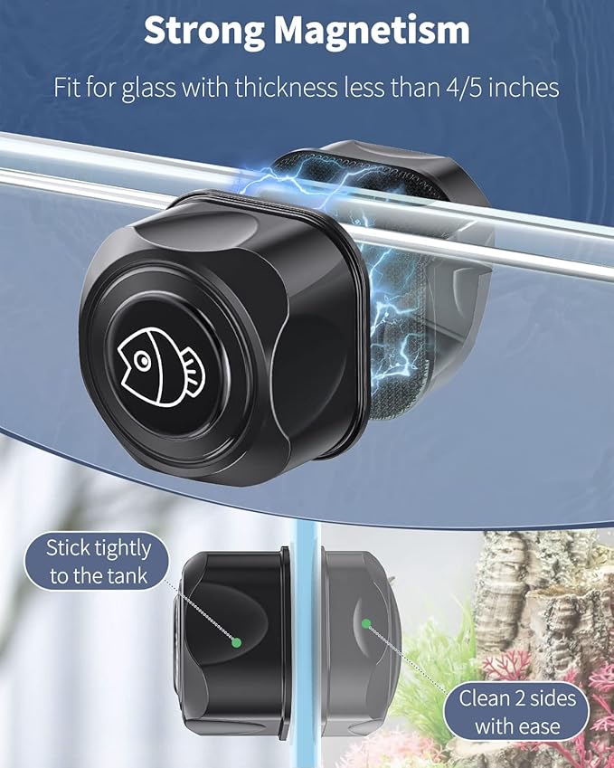 - Double Pads: The coarse pad can effectively clean inside the glass. And the soft pad is used to wipe dust outside. Thoroughly clean the tank to keep it crystal clear.