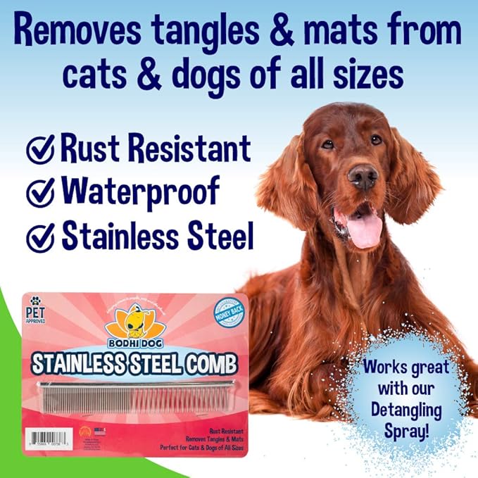 - BODHI DOG BUNDLE: Our premium bundle contains our popular blue Bath Brush and a Stainless Steel Comb. Both these products work in harmony so your pet gets the best grooming experience. The Bath Brush and Stainless Comb are gentle on your furry friend's coat and ideal for all types of hair!