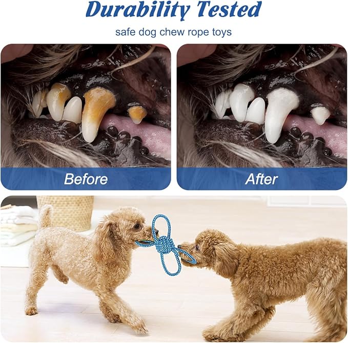 - ✔Ideal Gift for your Dogs and Home: We all know that dogs are strong chewers. When you leave dogs alone at home or in boredom, they will inevitably chew your sofa, blankets, and shoes. But with our puppy toy pack, you can protect your furniture and keep your dogs healthy. This rope toy will keep your dog busy, and never feel bored and anxious again.