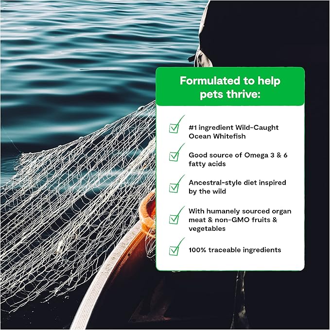 - HUMANELY SOURCED FISH - Crafted with a blend of wild-caught whitefish, salmon and rockfish, this delicious recipe includes nutrient-dense meat, organ, and bone with no grains or any byproducts.