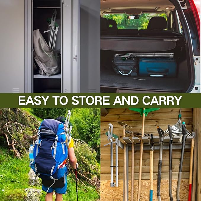 - [Foldable & Portable] - The 60‘’ length snake tong can be folded as 32‘’ length after you unlock the snap in the middle of the pipe, consuming less space in your room or car, much easier for using or storage. It also can be used as a pick-up tool to grab something without bending your waist.