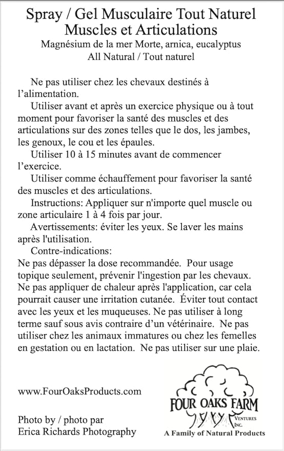 - Easy to Use: All natural Horse Liniment combines transdermal Dead Sea magnesium, arnica, and eucalyptus to provide immediate relief. Apply liberally on sore or strained areas and massage into skin. For lingering strains, reapply after 15 minutes and then every 3-4 hours.