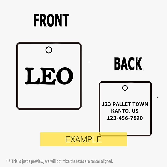 - Minimalist Design - The perfect name pendant for your cat / dog fur-baby. Individually engraved in a font of your choice with name, telephone number, address, birthday.