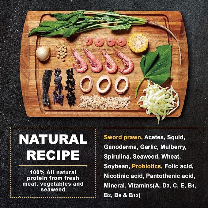 - Natural Coloration: The Ultra-enhanced formulation of natural seaweed, Australian spirulina, and premium fresh sword prawns enhances the natural coloration of your fish, presenting them in their most natural and vibrant colors