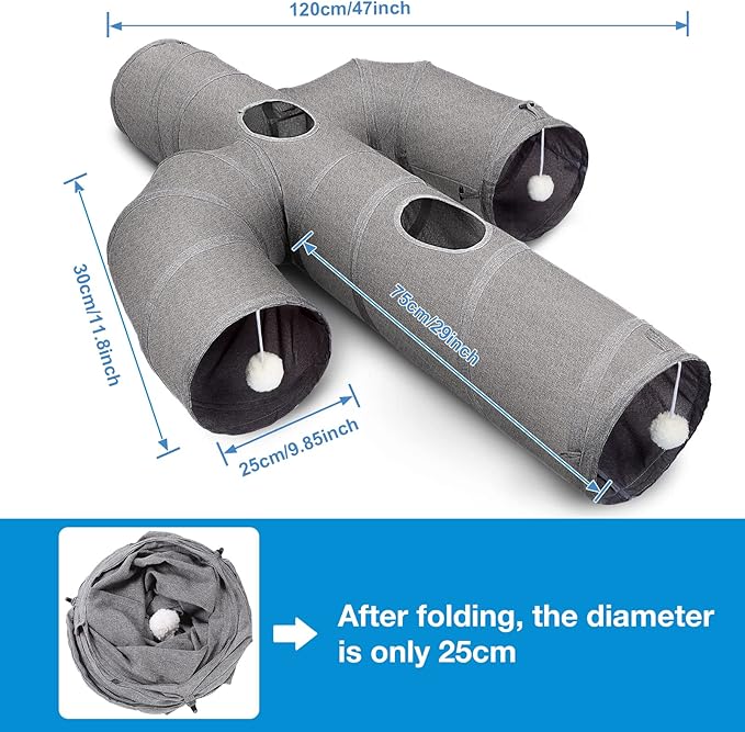 - Keep Your Pet Active: We provide hanging balls and peepholes on the cat tube to allow your cat to engage in additional entertainment activities. The small ball toy hanging in the middle of the cat tunnel can stimulate the cat's curiosity. Additional feather wand can increase interaction with cats.