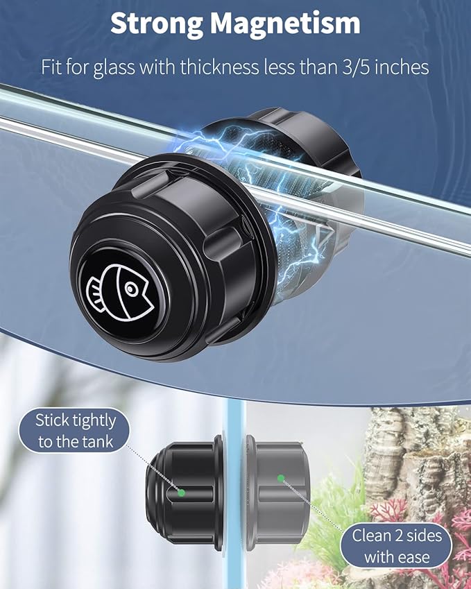 - For Glass Tanks Only: Measure 1.5" D x 2" H. Perfect size for fish tanks up to 10 gallons. Work well to clean glass with thickness less than 3/5 inches. Not Fit for Acrylic or Plastic Tanks!