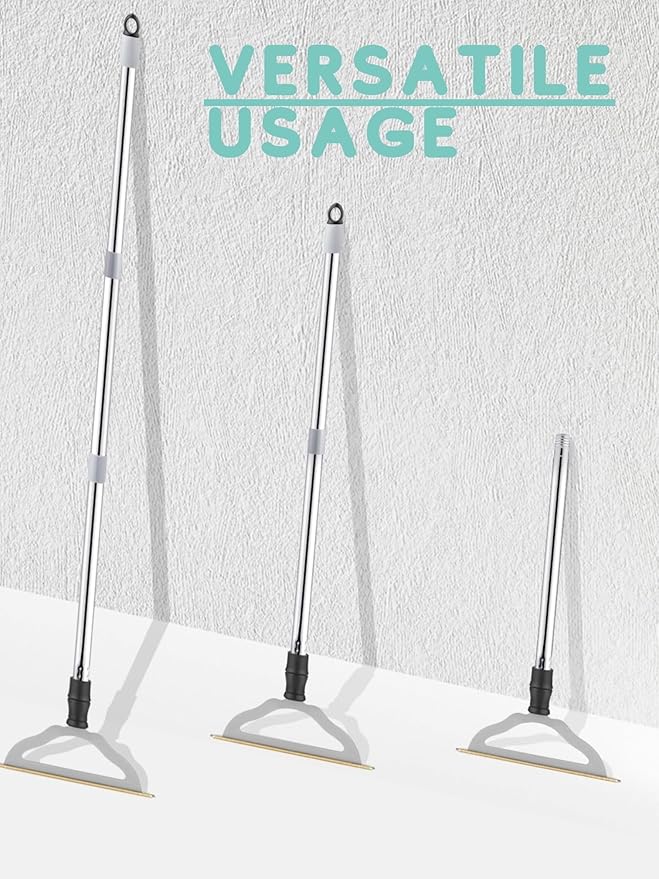 - Saving You from Bending or Crouching Down to Clean — With adjustable long handle, this dog, cat hair remover ensures easy access to hard-to-reach areas, no more back tense or pain. With versatile length options, this pet hair removal broom fits different heights; you can clean different spaces with comfort -- use the full-length handle (up to 47.3”) to scrape fur on large carpet; use 1 handle pole or adding no handle as a handheld rake to clean rugs, car floor, dog mat, cat tree, upholestery, bed, couch etc.
