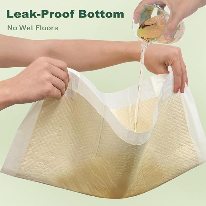 - Natural Odor Eliminating Pee Pads: Bamboo material naturally helps to eliminate unpleasant odors, keeping your home fresh; the pee pads for dogs also include a built-in pheromonal attractant to aid in training dogs to use the pads