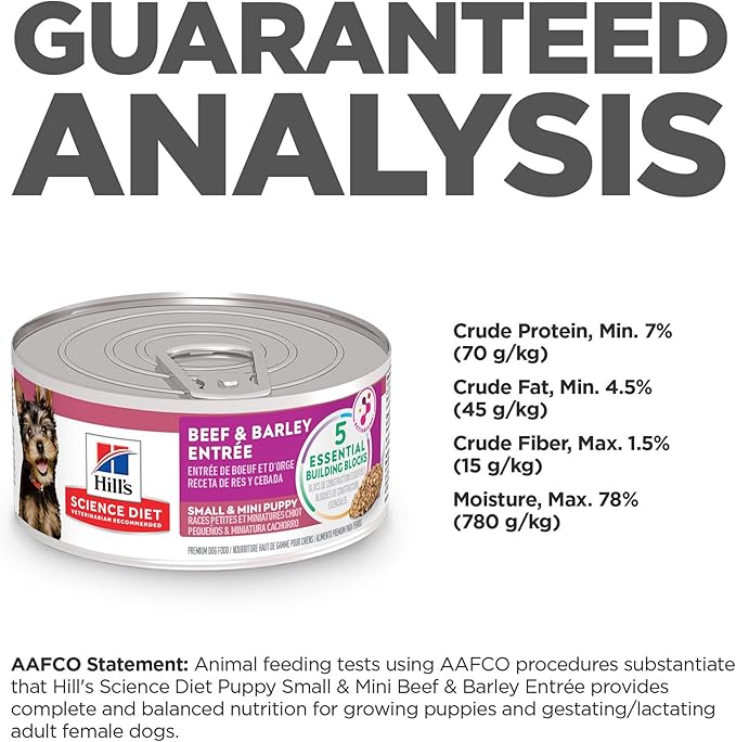 Hill's Science Diet Beef & Barley Entree Puppy Small and Mini Canned Food, 5.8 oz., Count of 24