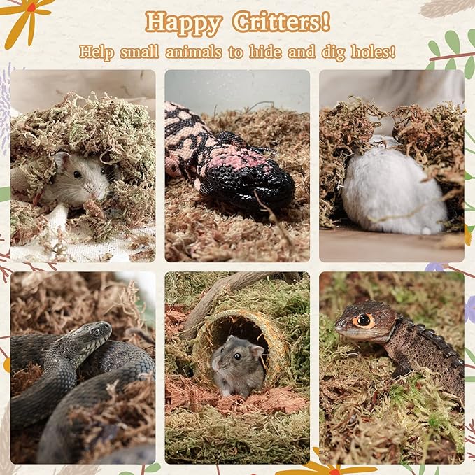 - Happy Critters: The forest floor moss are soft to sleep and just perfect to use as bedding for terrarium. Use these natural moss for your pets and encourage burrowing and digging behaviors. Riare Forest Moss will definately make a great addition to any terrarium