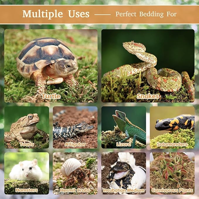 - Widely Used: Used as substrate for reptile and amphibians terrariums, forest soil for carnivorous plants and orchids, or used as egg-laying and incubation medium. These reptile moss will absolutely turn out great for your lovely pets or plants