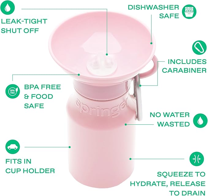 - MADE FOR THIRSTY PETS: Springer, formerly Highwave, created the Classic dog water dispenser for any adventure whether it’s going on walks, hiking, or road trips. Our 22 oz pet water bottle can easily be used with one hand and prevents wasting water.