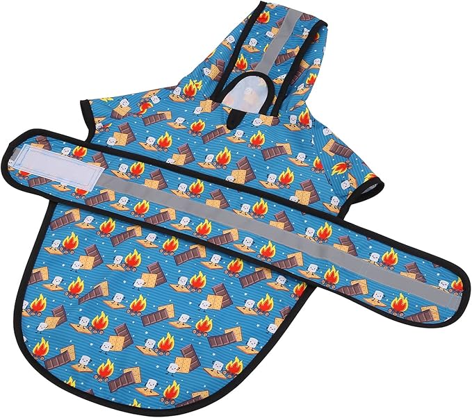 HDE Dog Raincoat Jacket Reflective Adjustable Hooded Pet Poncho Rain Coat with Leash Hole for Small to X-Large Dogs Happy Camper - L