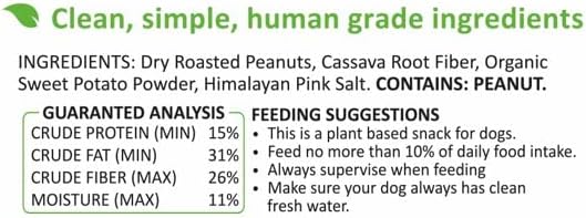 - SIMPLE, WHOLESOME INGREDIENTS - our protein bars for dogs are made with easy-to-pronounce ingredients such as Dry Roasted Peanuts, Cassava Root Fiber, Organic Coconut Powder, and Organic Sweet Potato Powder. We prioritize minimally processed, sustainably sourced ingredients to create healthy and tasty dog treats