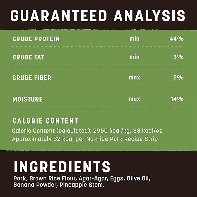 - THERE’S NO-THING LIKE IT: These thin, all natural No-Hide Strips are made with humanely raised pork and are easily digestible. Baked slowly and gently to perfection.