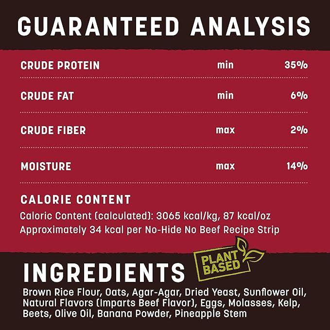 - THERE’S NO-THING LIKE IT: These thin, all natural, easily digestible No-Hide Strips are made with a fusion of flavors that taste and smell like beef – without the meat! Baked slowly and gently to perfection.
