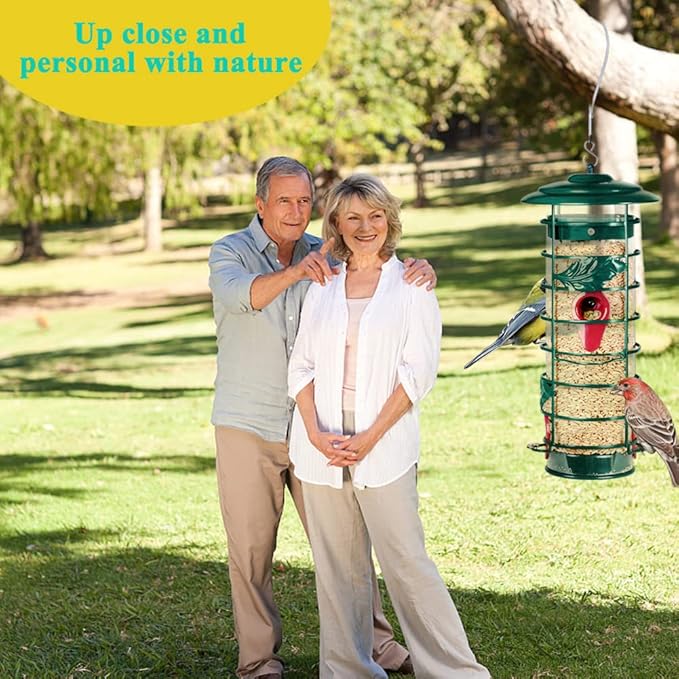 - The Best Gift - This bird feeders squirrel proof is a high-quality gift for parents, nature lovers, and children. Squirrel proof bird feeder is also an elegant decoration for your home or outdoor space. Wild bird feeders provides a way to relax and enjoy the beauty of nature from up close by observing wild birds, while ensuring that there is enough food to feed avian friends. Bird feeders for outdoors hanging is perfect for busy young people to learn responsibility and the joy of feeding birds.