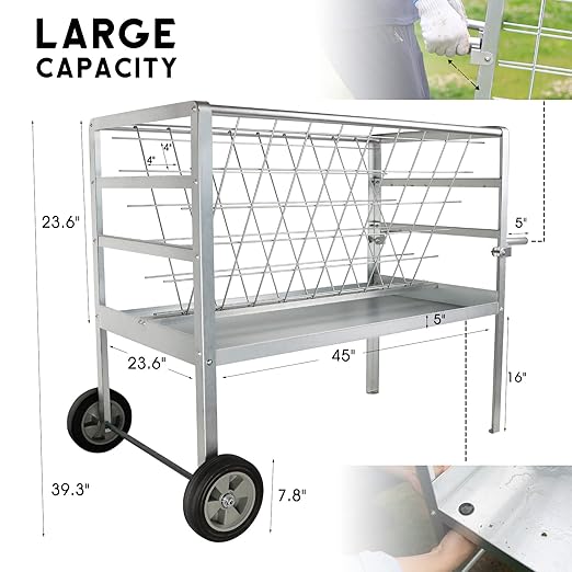 - 2-in-1 Goat Hay Feeder: upper tray holds grain/salt blocks while catching fallen hay below, proven to reduce waste in livestock shelters. Seamless edges protect animal mouths, and the heavy-duty design works as both stationary goat feeder or mobile cart for paddocks.