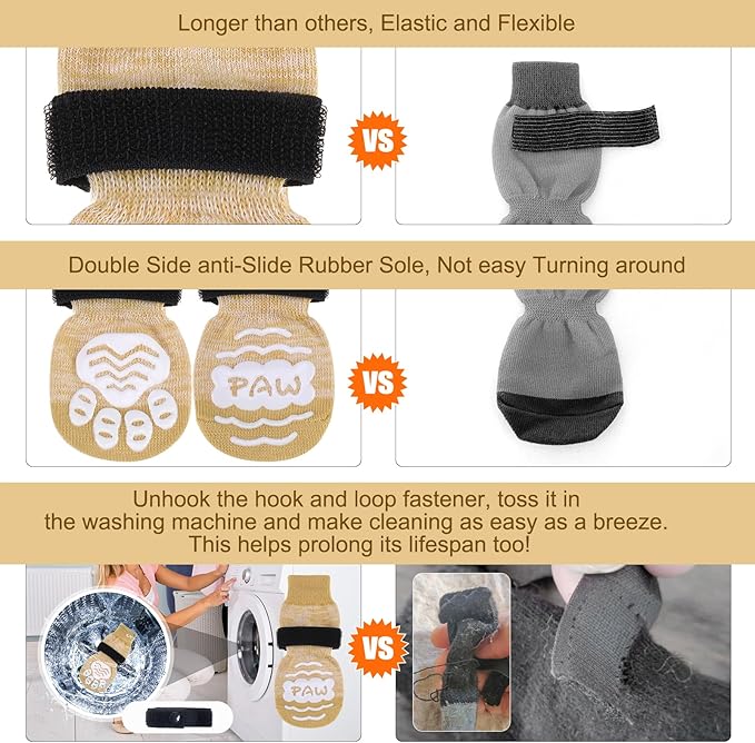 - Anti-slip: With a double sided non-slip rubber sole, your pet's paws will have a good grip on the floor. For hardwood floors, if your baby's paws have a problem slipping on wood floors, we recommend you buy these socks with a anti-slip adhesive. Use non-slip socks to help heal foot wounds and prevent the dog from licking and further irritating the wound. ??Please note that we have a design patent to protective this exclusive design!