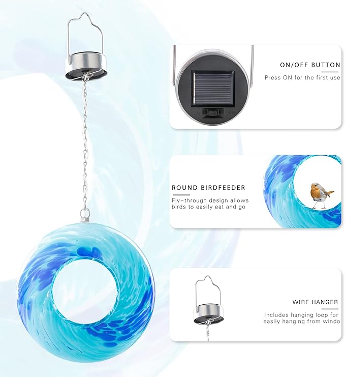 - 【A Perfect Gift Idea】Glass solar bird feeders are an excellent gift for nature lovers; they make a lovely outdoor decoration, and give people an opportunity to observe and photograph birds as they relax in your yard or garden
