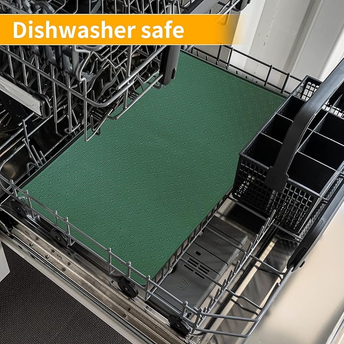 Ptlom Pet Placemat for Dog and Cat, Waterproof Silicone Pet Feeding Bowl Mats for Food and Water, Small Medium Large Dogs Mat Prevent Residues from Spilling to Floor, Hunter Green, 18" 12"