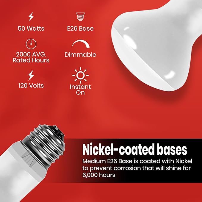 - LONG LIFE - This R20 Heat lamp has a lifespan of 6000 Average Rated Hours reducing the need for frequent bulb replacements .Weather Proof