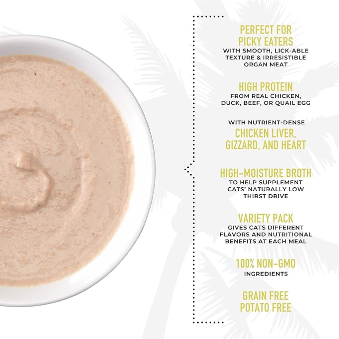 - Perfect for picky eaters with smooth, lick-able texture and irresistible organ meat to enhance palatability.