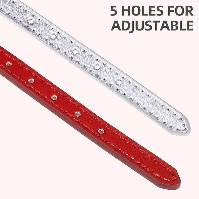 PUPTECK 2 PCS Soft Genuine Leather Cat Kitten Collar with Bells Adjustable for Girl Boy Cats Puppy - Red, Silvery