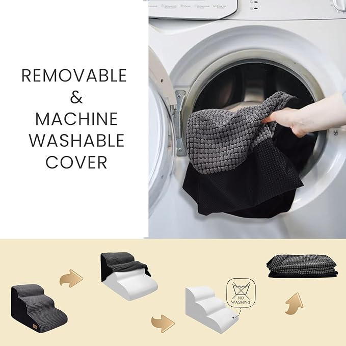 - Easy to Care: Our dog stairs are designed with a zip which makes it easy and convenient to put the cover on and take it off. Machine wash and tumble dry the pet stairs cover to give your pet a comfortable and clean pet steps.