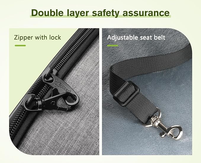 - 【SAFETY & STORAGE 】: 1, Made of high-quality Oxford Cloth, waterproof, anti-scratch, and non-irritating, let your pet breathe freely and relax. 2, Adopts lock-type zipper design to prevent the zipper from being opened by pets. Built-in retractable hook safety rope to prevent pets from escaping. 3, The pockets on both sides can store food, water bottle, poop bags, and some necessary accessories.