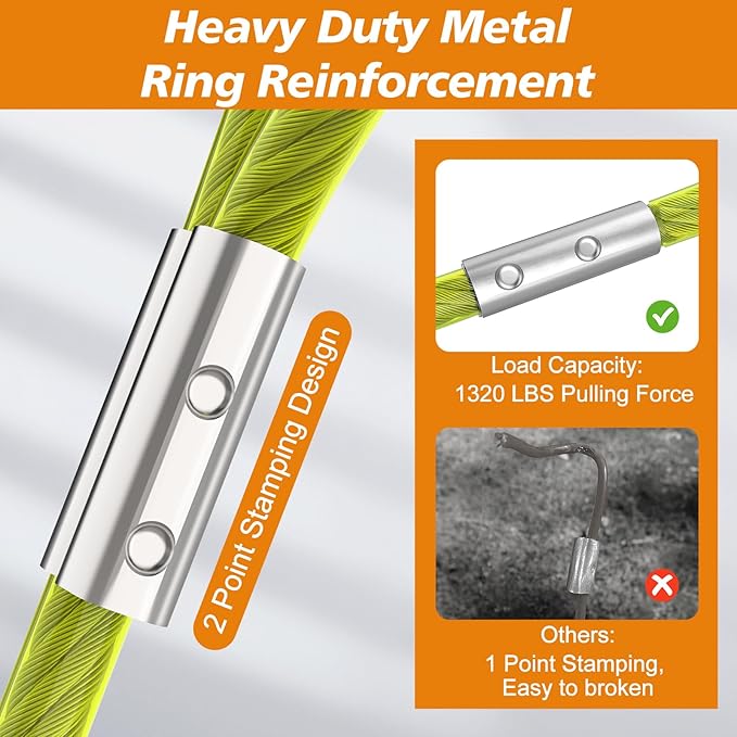 - Ultra Strong Dog Tie Out - The inner core of our dog wire leash is consits 7*19 stainless steel wire which is the most tightly twisted and most sturdy structure of dog cable. The outer skin is chew proof vinyl coating, and the crimps of the two end has been double hardened. Our dog tie out cable have been rigorously tested, it's perfect for dogs up to 500LBS.