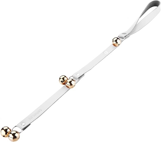 Leather Dog Doorbells for Door Knob/Potty Training/Go Outside, Length Adjustment Copper Dog Bell, Housetraining Hanging Bell, White Leather Golden Bells.