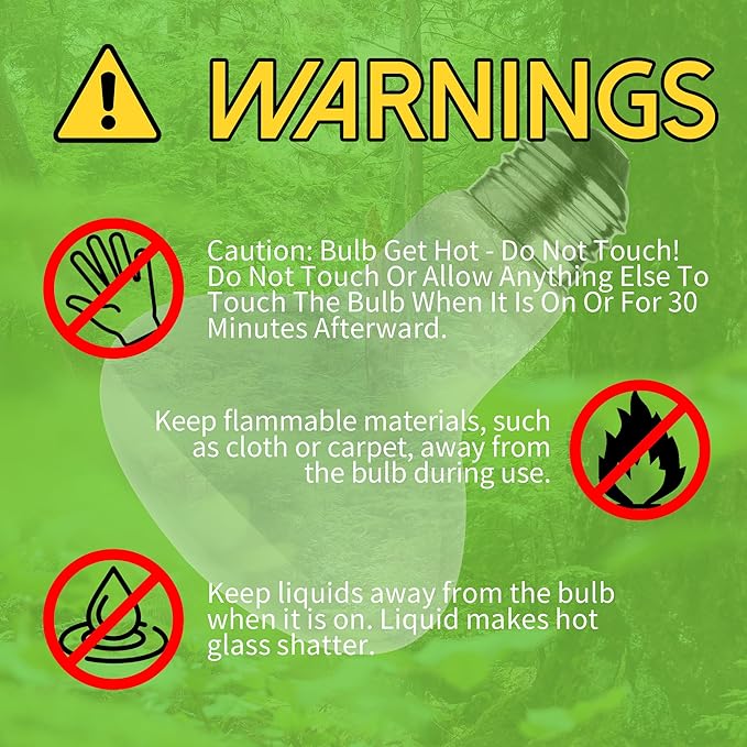 - [High Heat Efficiency] The reptile basking bulb simultaneously provides adequate UVA light and heat to the reptile and will also increase the ambient air temperature in the terrarium.