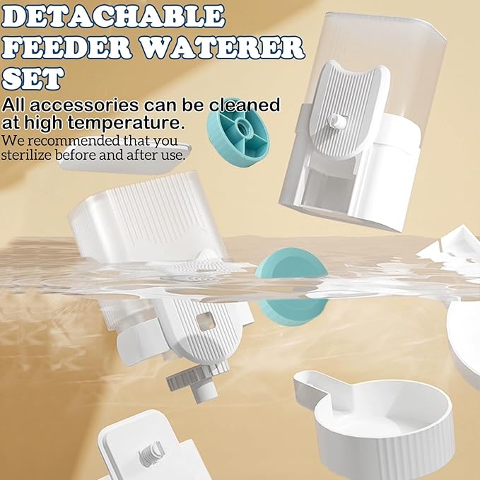 - Material Safety: The bunny food feeder and water dispenser is made of transparent PP to observe the capacity food, which sturdy durable. And all parts are removable for easy cleaning, providing your pet with a healthy eating environment
