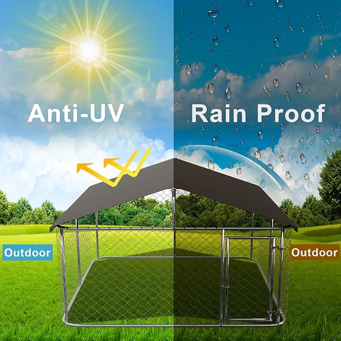 - 【Large Space for Dog Play】Size:118”W x 118”D x 65”H.This outdoor dog kennel suits small and medium-sized dogs.It is a good choice for pets to train/rest/play outdoors.