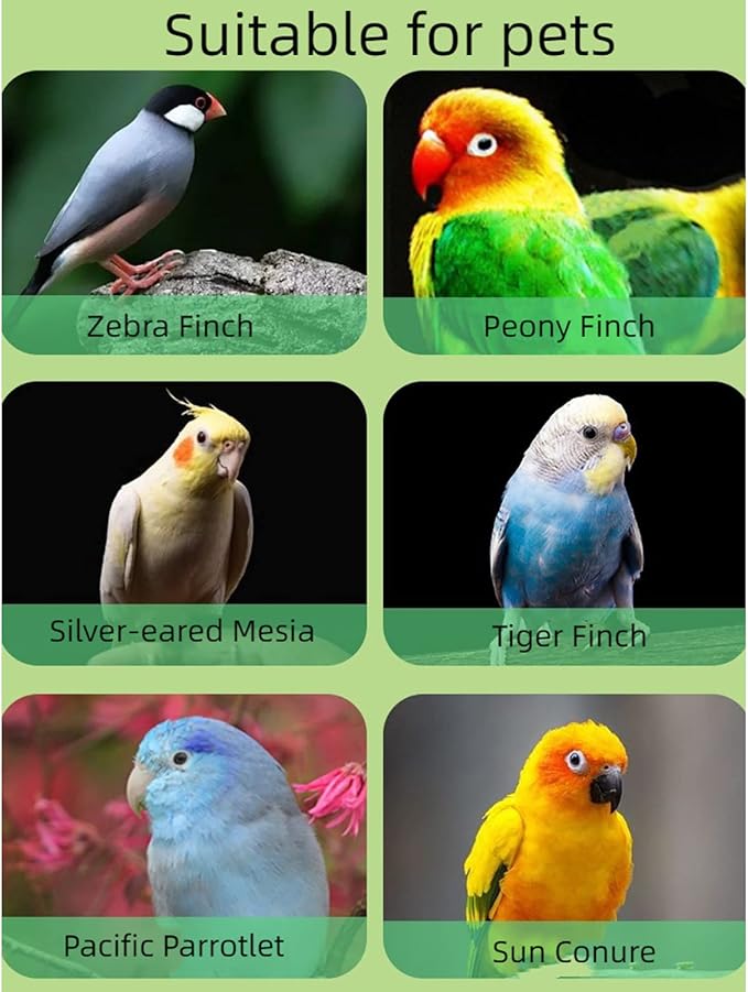 - Vibrant Colors: Choose between green and pink color options to add a touch of style to your bird's habitat or small pet's enclosure
