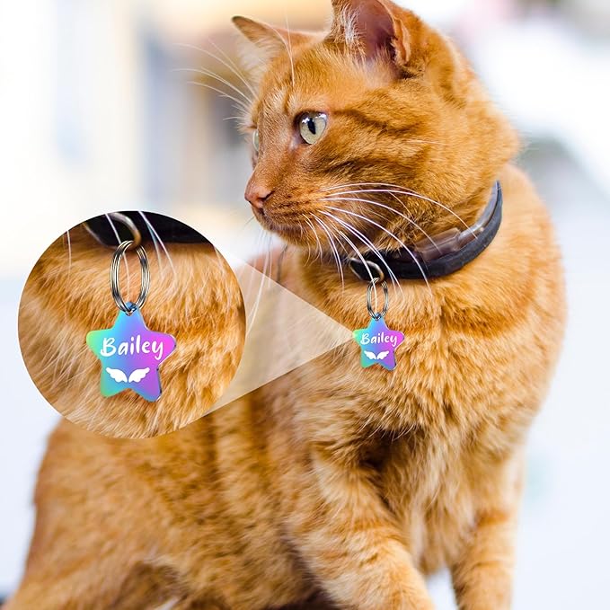 - Suitable Size: These star shaped custom pet tags are 0.07" (1.8mm) thick, 1.57" (40mm) in length and 1.50"(38mm) in width for large size, recommend for pets over 40 lbs; 0.98" (25mm) in length and 0.94" (24mm) in width for small size, recommend for pets 40 lbs and under.