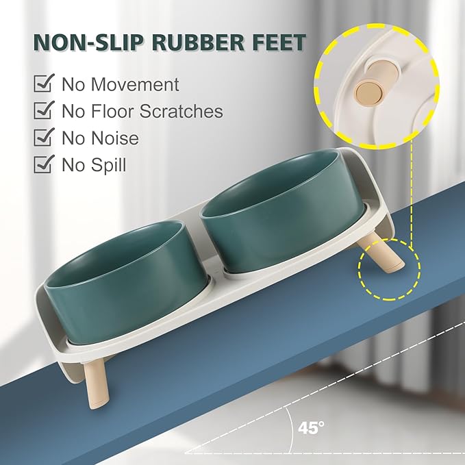 • No More Messy Floors - This raised dog bowl with a splash proof guard which helps prevent the spills or messes splashing to the floor, saving your time on mopping and wiping. The bottom of each leg is equipped with non-slip rubber to prevent sliding when the pets are eating, and provide protection for your floors.