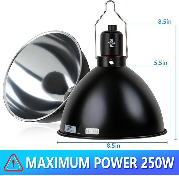 Reptile Light Fixture, 8.5 inch Optical Reflection Dome Heat Lamp Fixture, UVB Heat Basking Lamp Fixture for Amphibian Reptile Terrariums