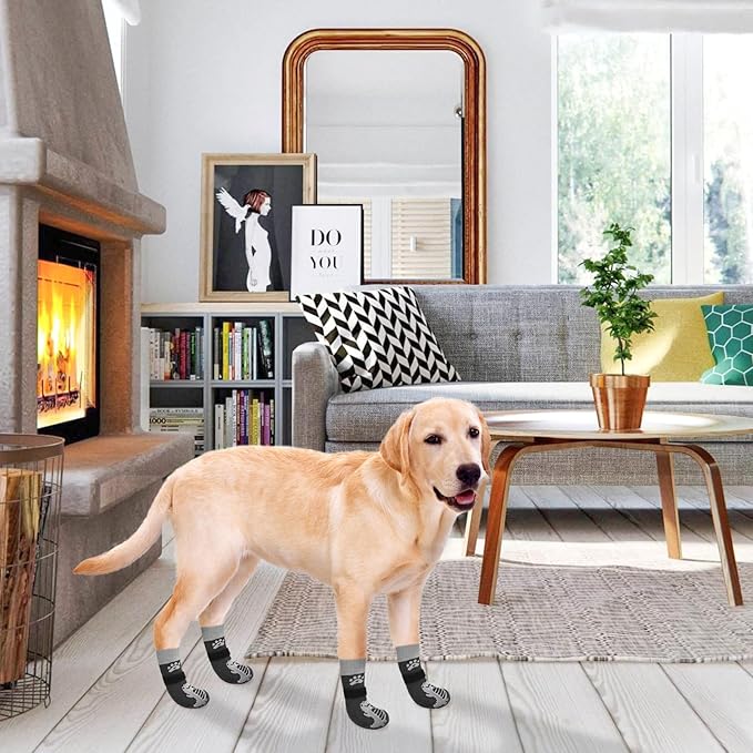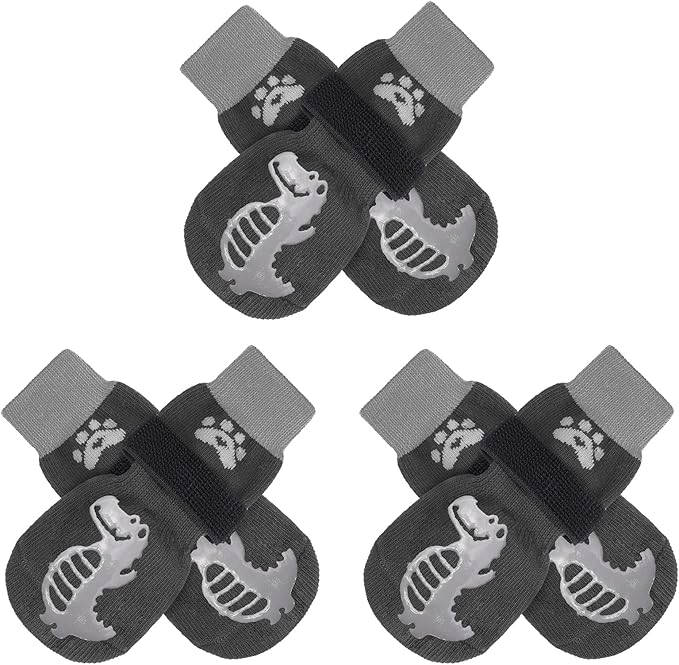 - Anti-slip: With a three-sided non-slip rubber sole, your pet's paws will have a good grip on the floor. For hardwood floors, if your baby's paws have a problem slipping on wood floors, we recommend you buy these socks with a anti-slip adhesive. Use non-slip socks to help heal foot wounds and prevent the dog from licking and further irritating the wound.