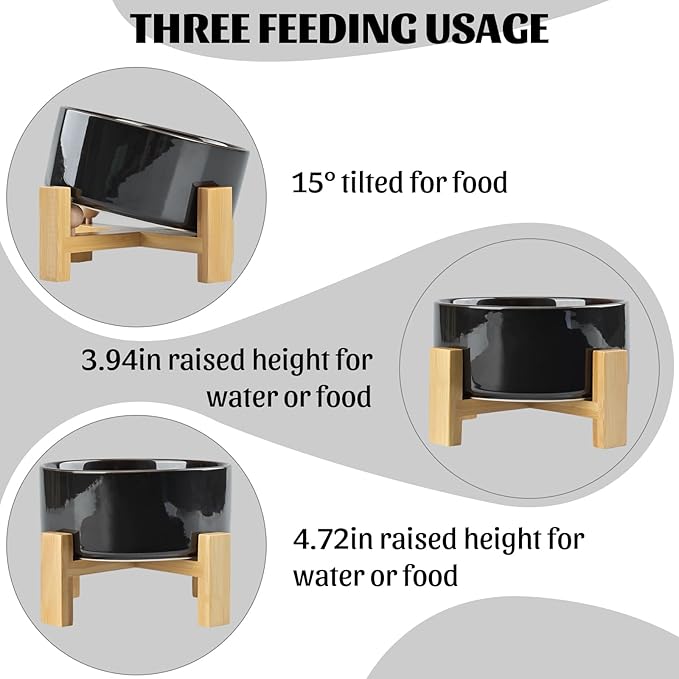 - CERAMIC MATERIAL: SPUNKYJUNKY Tilted Dog Bowl Set uses high temperature fired safe ceramics with a heightened wooden stand to provide a healthy feeding environment for your pet