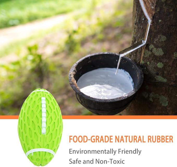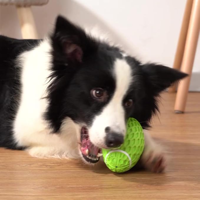- 🐕【Attractive Design with Squeaker】Featuring a classic football design and give your dog the ultimate chewing experience. Its grooved surface allows for easy gripping and quick biting. Plus, its built-in sound device makes squeaky sound which is irresistible to dogs.