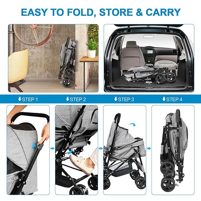 - 【Easy to Assemble & Fold】Our pet stroller can be easily assembled by one person in a few minutes without any tool or skill. It can also easily fold down to a compact size for convenient storage when not in use and it's fully detachable to be 2 separate carrier to meet different needs in various scenes.