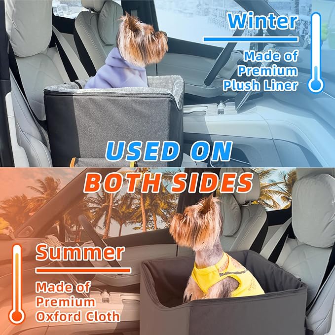 - Double-Sided Liner: JJRING dog car seat is made of premium fabric, used with the pad. The pad can be connected to the top opening with a zipper and can be detached for washing. It is used on both sides: Oxford cloth for summer use and plush liner for winter use