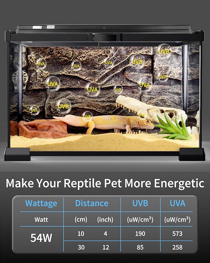 - Excellent Lighting Effect - T5 uvb reptile light fixture kit provides higher brightness and more even lighting, creating a comfortable habitat for your pets. Colors are more vibrant and details are clearer when viewing reptiles. The 10.0 uvb light for reptiles is suitable for all desert area reptiles and amphibians, such as lizards, bearded dragons, chameleons, geckos, turtles, snakes, iguanas, frogs and more.
