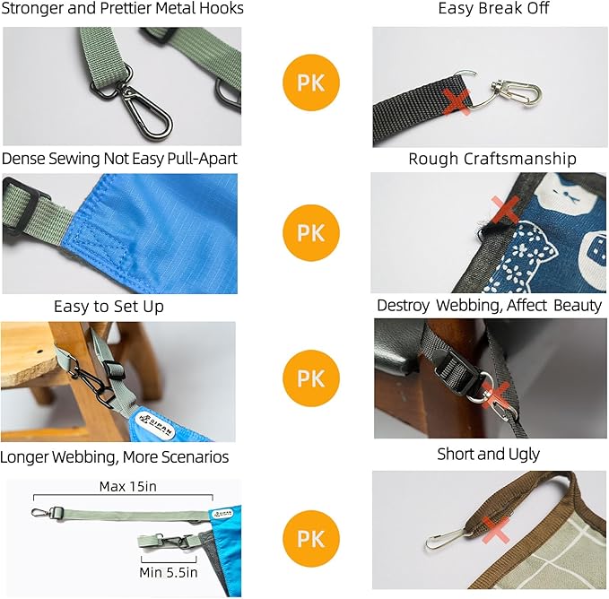 - [Solid and Durable] This breathable, double-layered cat bed is made of non-toxic materials. Super soft flannel and waterproof nylon. Thick webbing, dense sewing, and a strong and firm construction using CNC precision wiring, the sewing thread is compact and robust, not easily broken off. It is beautiful and sturdy, and it has rough chrome-plated metal hook that is easy to pick up.