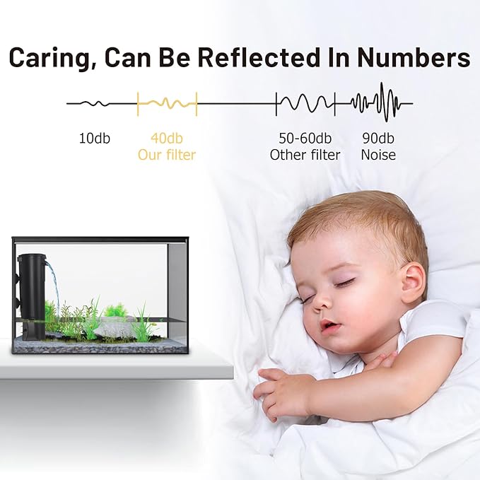- [QUIET & WATERFALL] - Waterfall design to help water aeration. High performance, the motor set under the water, more quiet than external filter, you can create a waterfall with rock inside the fish tank
