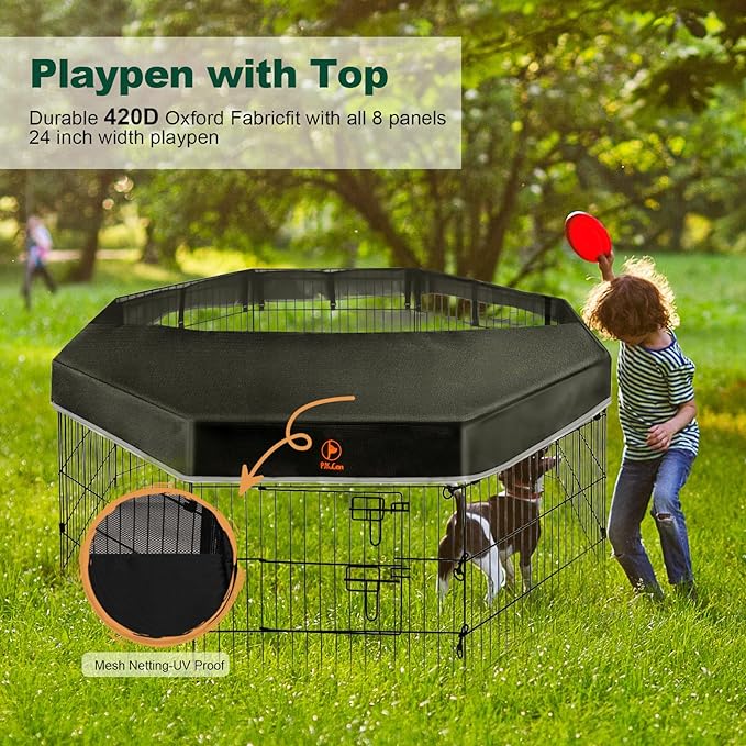 PJYuCien Dog Playpen - 8 Panels 42 inchH Metal Foldable Exercise Pen, Pet Fence Puppy Crate Kennel Indoor Outdoor with Top Cover & Bottom Pad for Medium Large Pets Black…